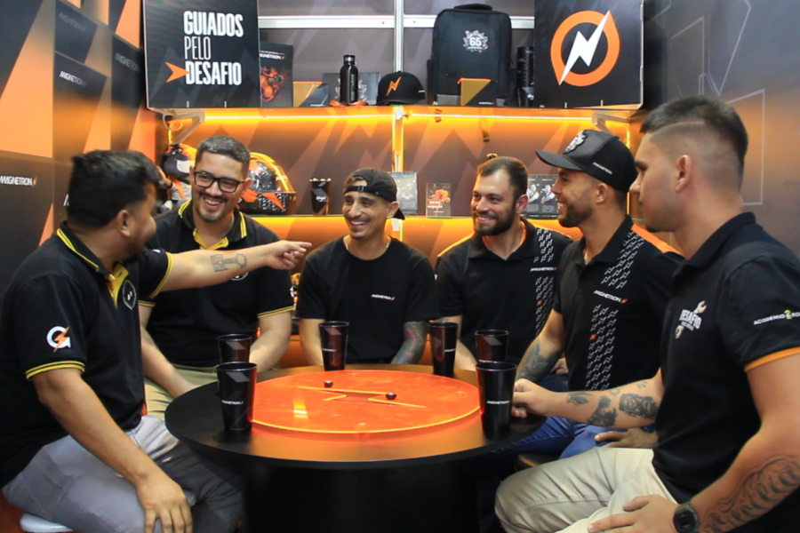 E para deixar tudo ainda mais divertido e interativo, realizamos uma dinâmica especial no nosso app Magnetron: um quiz diário sobre a marca! Durante os quatro dias de evento, os participantes testaram seus conhecimentos e concorreram a prêmios exclusivos. Os melhores colocados no ranking levaram para casa um capacete, uma mochila e até a pelúcia do Zé Gambi. Uma forma leve e descontraída de reforçar o conhecimento e premiar quem realmente veste a camisa da Magnetron!